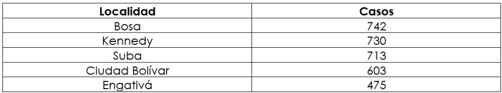 Las localidades con más casos reportados en 2024 fueron: