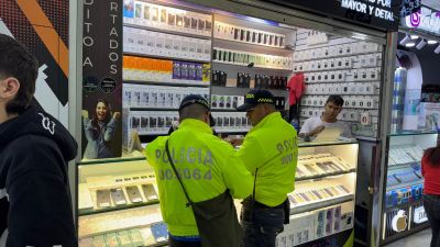 La Policía Nacional realizó una intervención a 70 establecimientos comerciales dedicados a la comercialización de celulares y partes tecnológicas en el sector de la calle 13 de Bogotá.