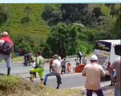 Unos 3000 mineros de los municipios de Quinchía Risaralda, Marmato, Riosucio y Supía Caldas bloquean el corredor vial que conecta a los departamentos de Antioquía, Caldas, Valle y Risaralda en señal de protesta para que se les reconozca c…