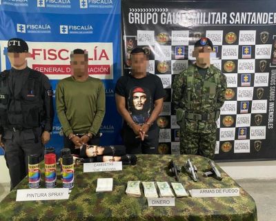 Tropas del Gaula Militar Santander, lograron en las últimas horas la captura en flagrancia de dos hombres que al parecer se hacían pasar por integrantes del ELN, para adelantar extorsiones en Puerto Parra y Cimitarra, Santander.