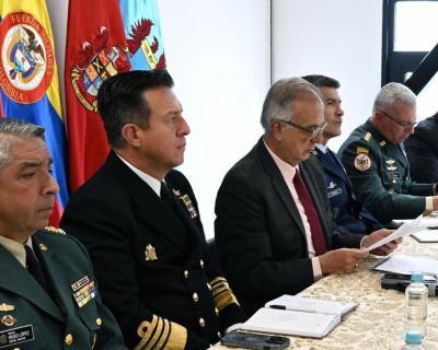 El ministro de Defensa Nacional, Iván Velásquez Gómez, acompañado por la cúpula militar y de Policía, presentó ante los honorables congresistas de la Comisión Segunda del Senado de la República, la hoja de vida de 32 oficiales de la Fuerz…