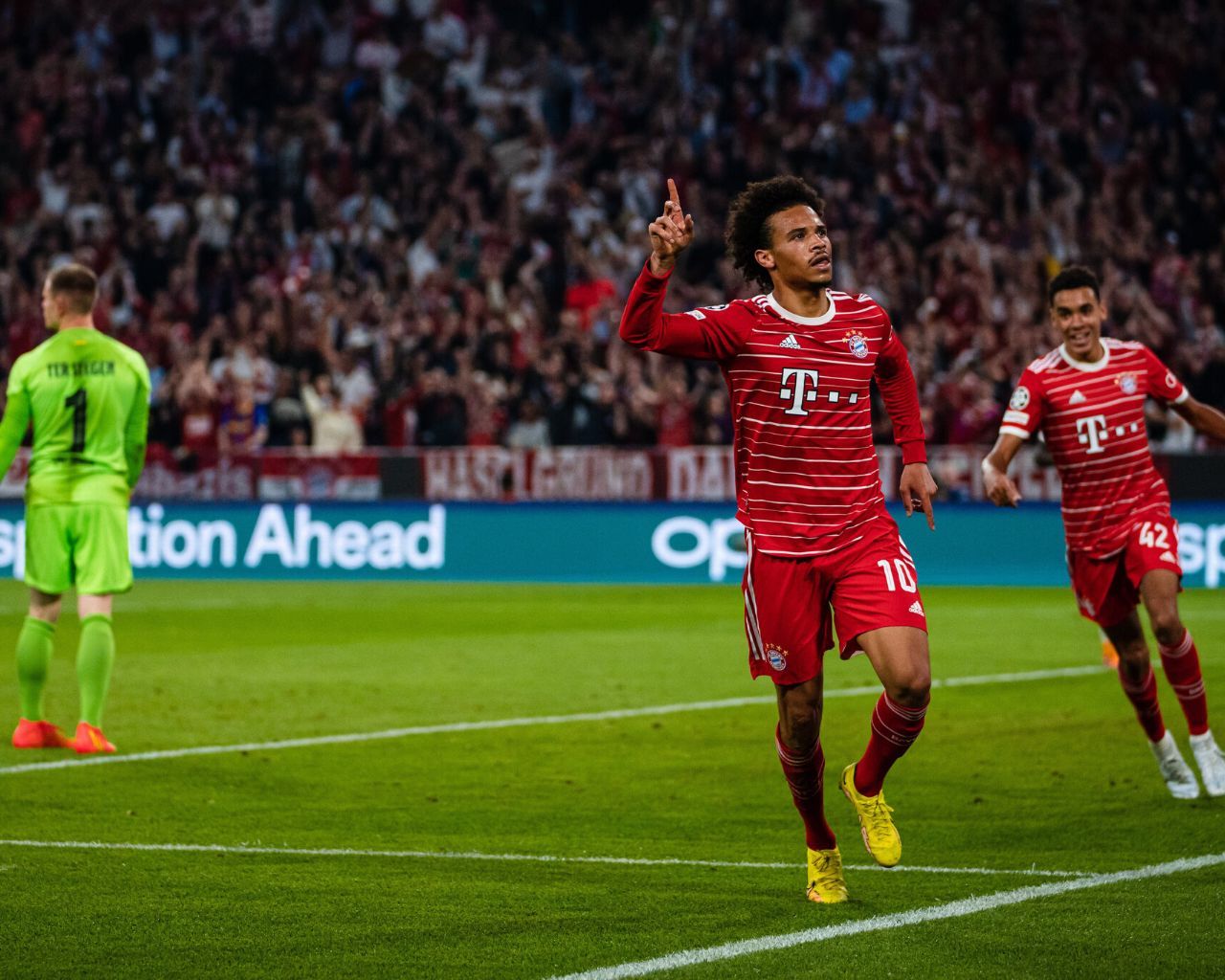 En el Allianz Arena, los locales crearon peligro en tan solo 40 segundos. Su lateral izquierdo, Noussair Mazraoui, llegó a la línea de tres cuartos y pasó al centro para Harry Kane, que de primeras asistió a la carrera de Leroy Sané, quien había cogido la espalda de Antonio Rüdiger.