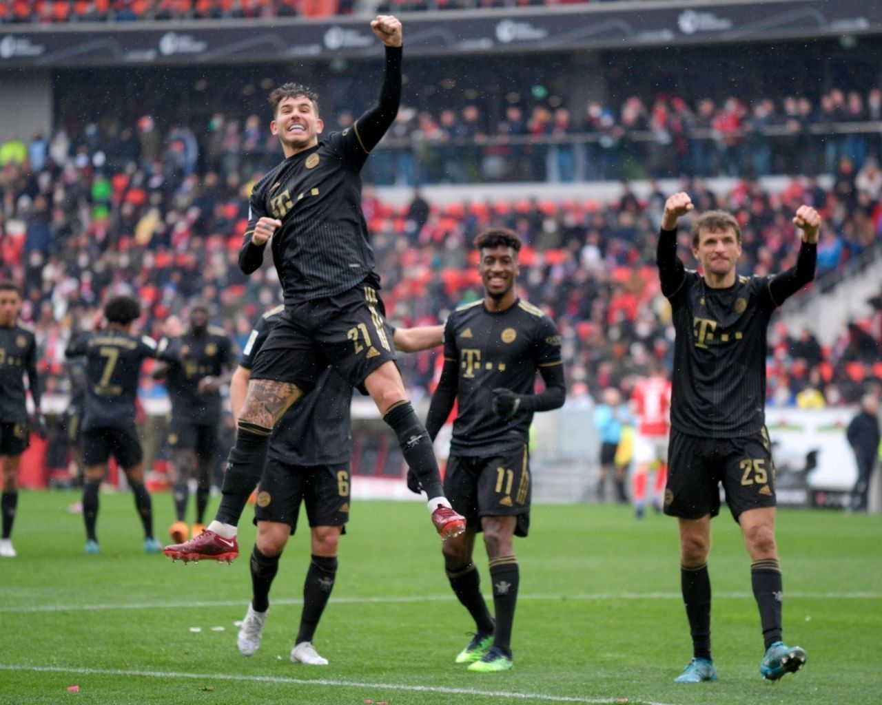 Su tiro, en el minuto 7, se marchó por encima del larguero. Igual ocurrió con un disparo de Kane dese el círulo central, habiendo visto a Lunin adelantado. Tampoco tuvo puntería Jamal Musiala con un zurdazo posterior, a pase de Thomas Müller por abajo desde el costado derecho.