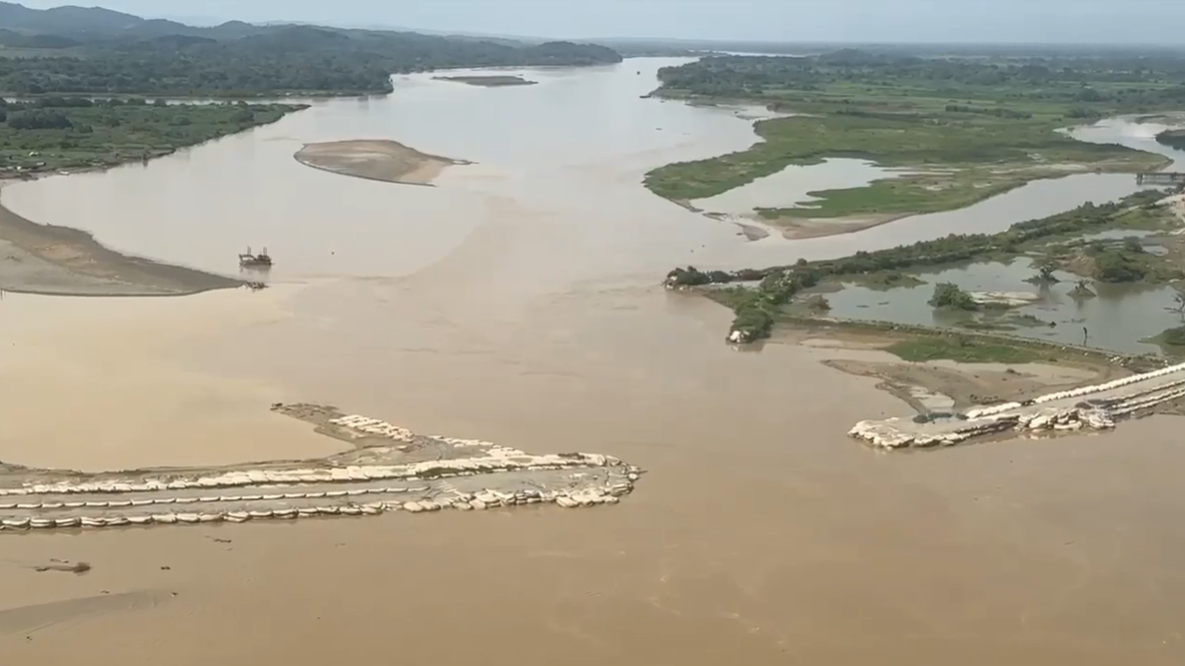 La Unidad Nacional Para la Gestión del Riesgo de Desastre (UNGRD) interviene la región de La Mojana en el sector de La Esperanza sobre el rio Cauca para mitigar las inundaciones.
