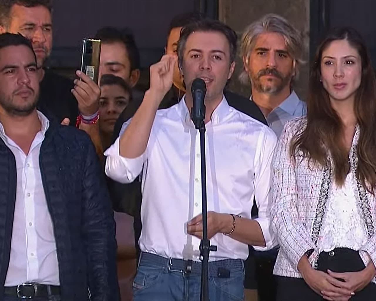 Rodeado de su esposa y colaboradores el suspendido alcalde de Medellín, Daniel Quintero Calle, salió a la plaza pública para rechazar la desición de la Procuraduría General de la Nación que lo apartó del cargo por presunta participación en la contineda electoral.